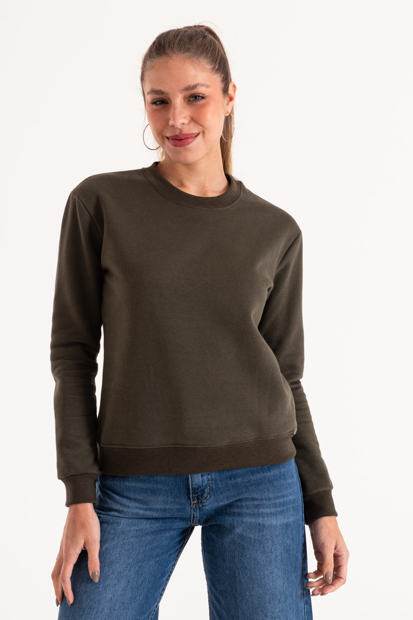 Buzo básico manga larga de frisa con cuello, bajo y puño en morley.