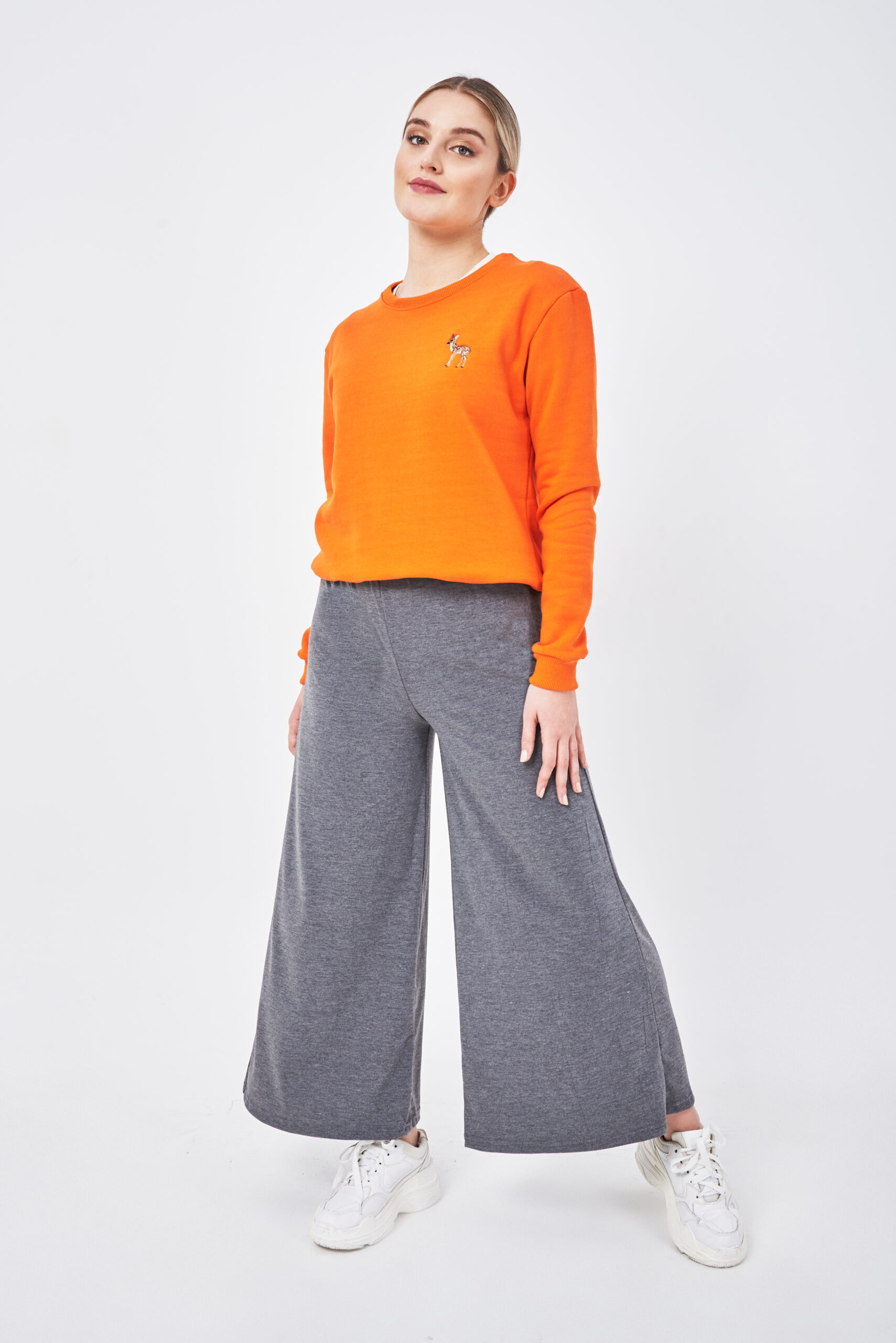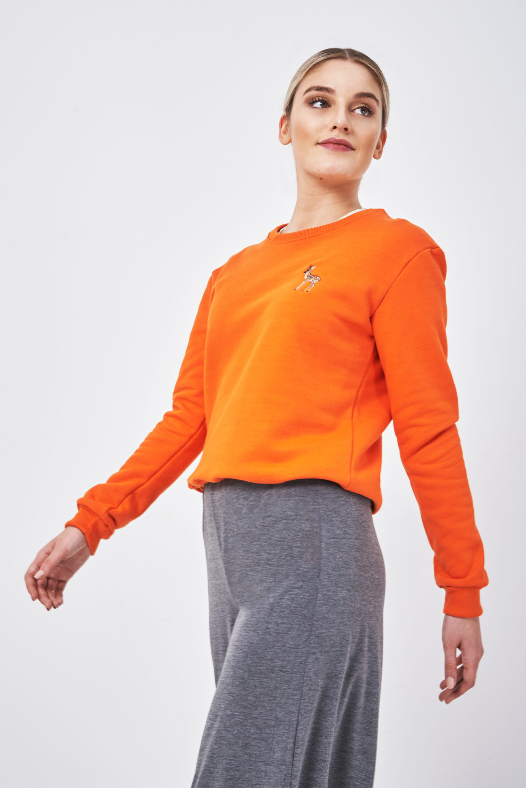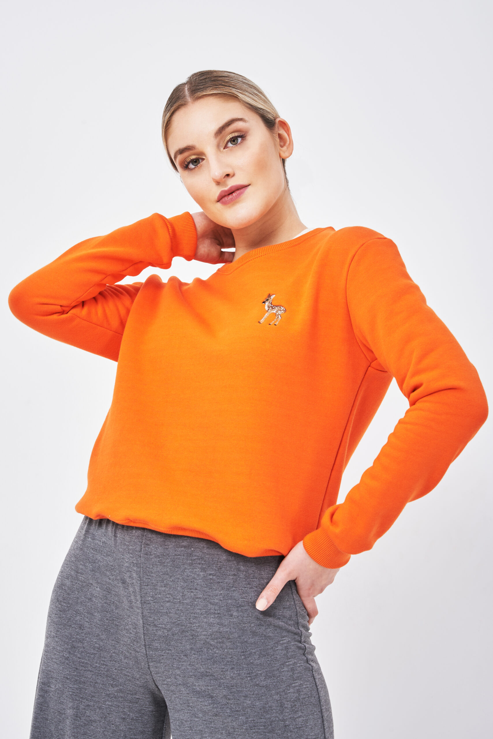 Buzo básico de frisa, manga larga con cuello redondo. Detalle de bordado en el delantero.