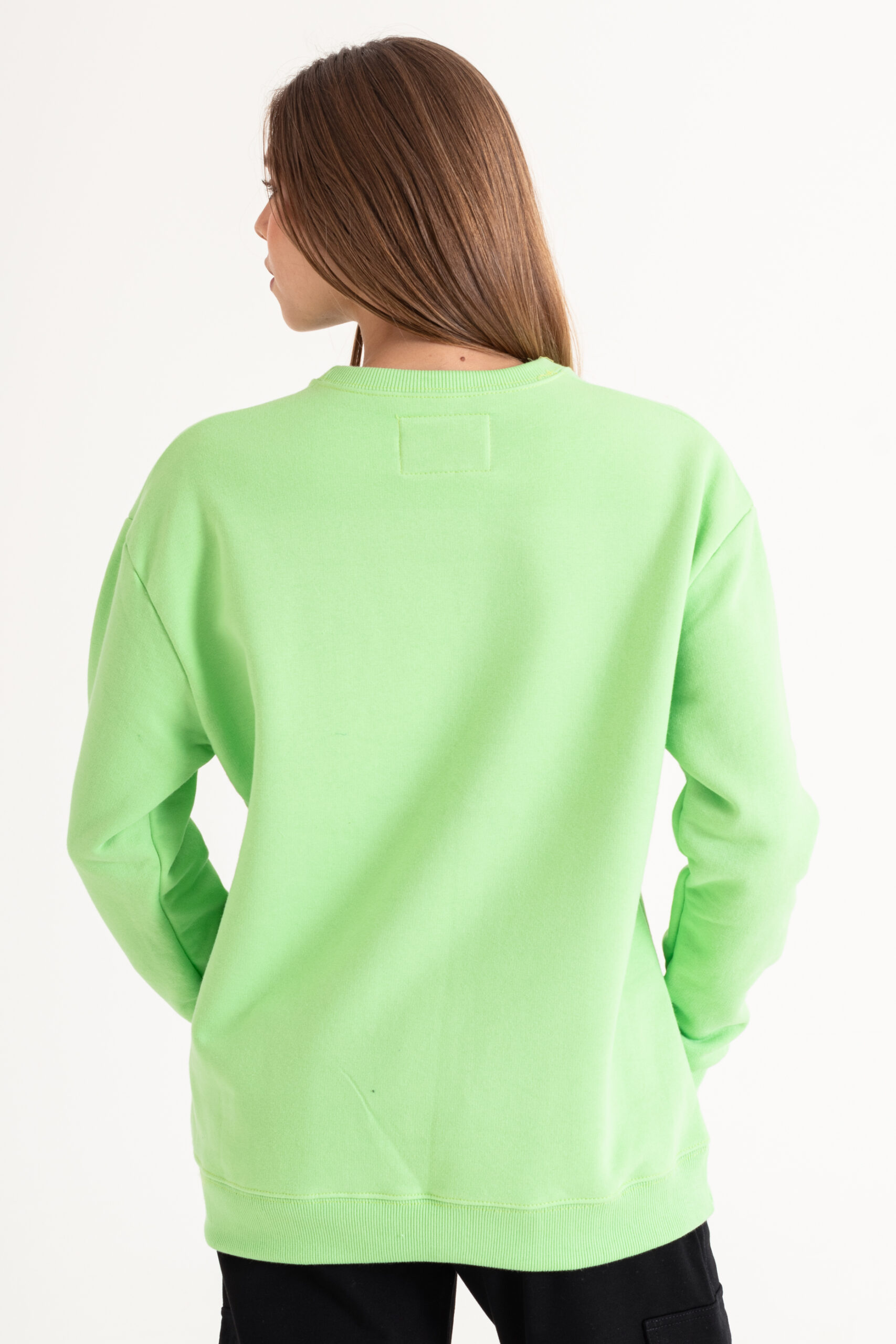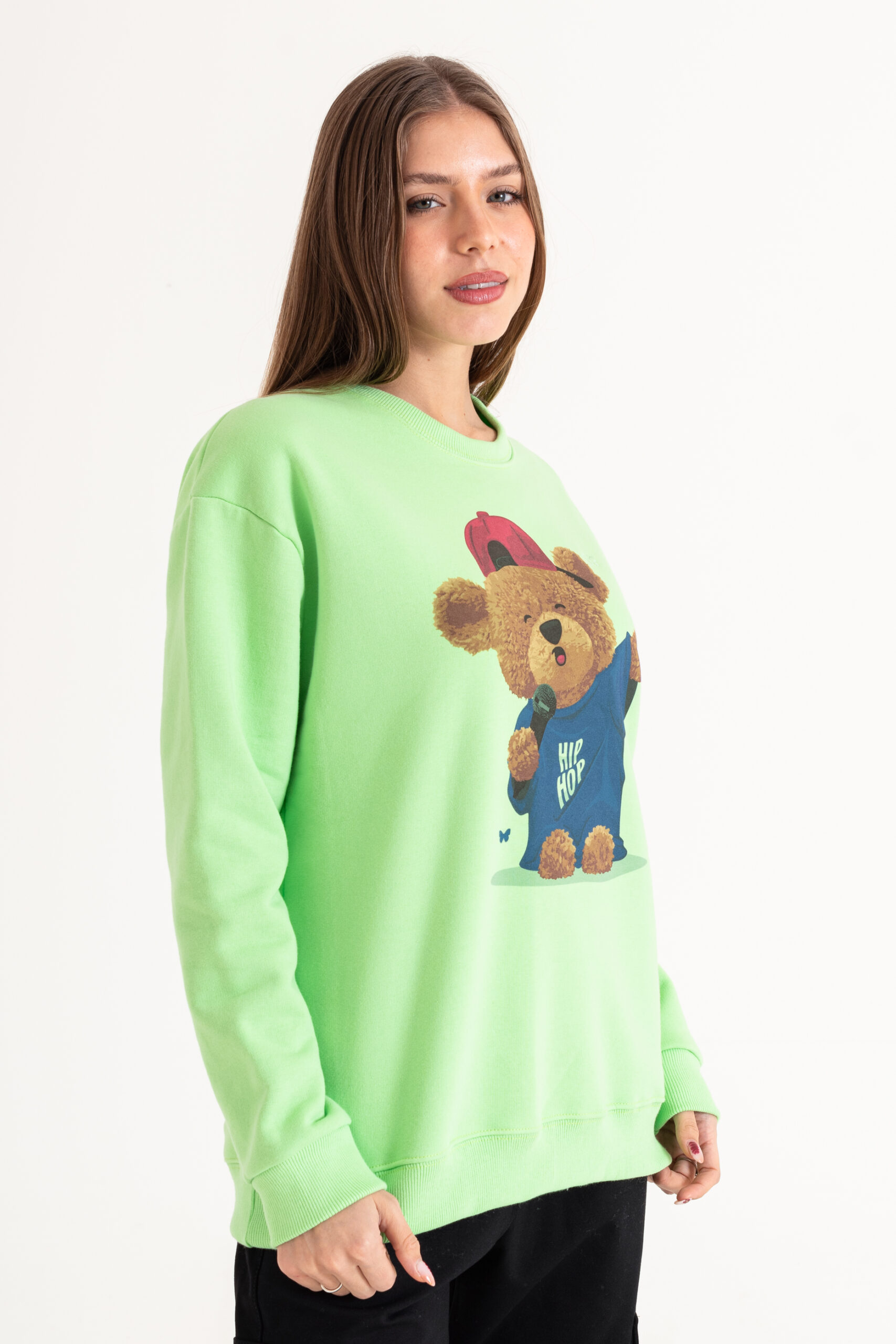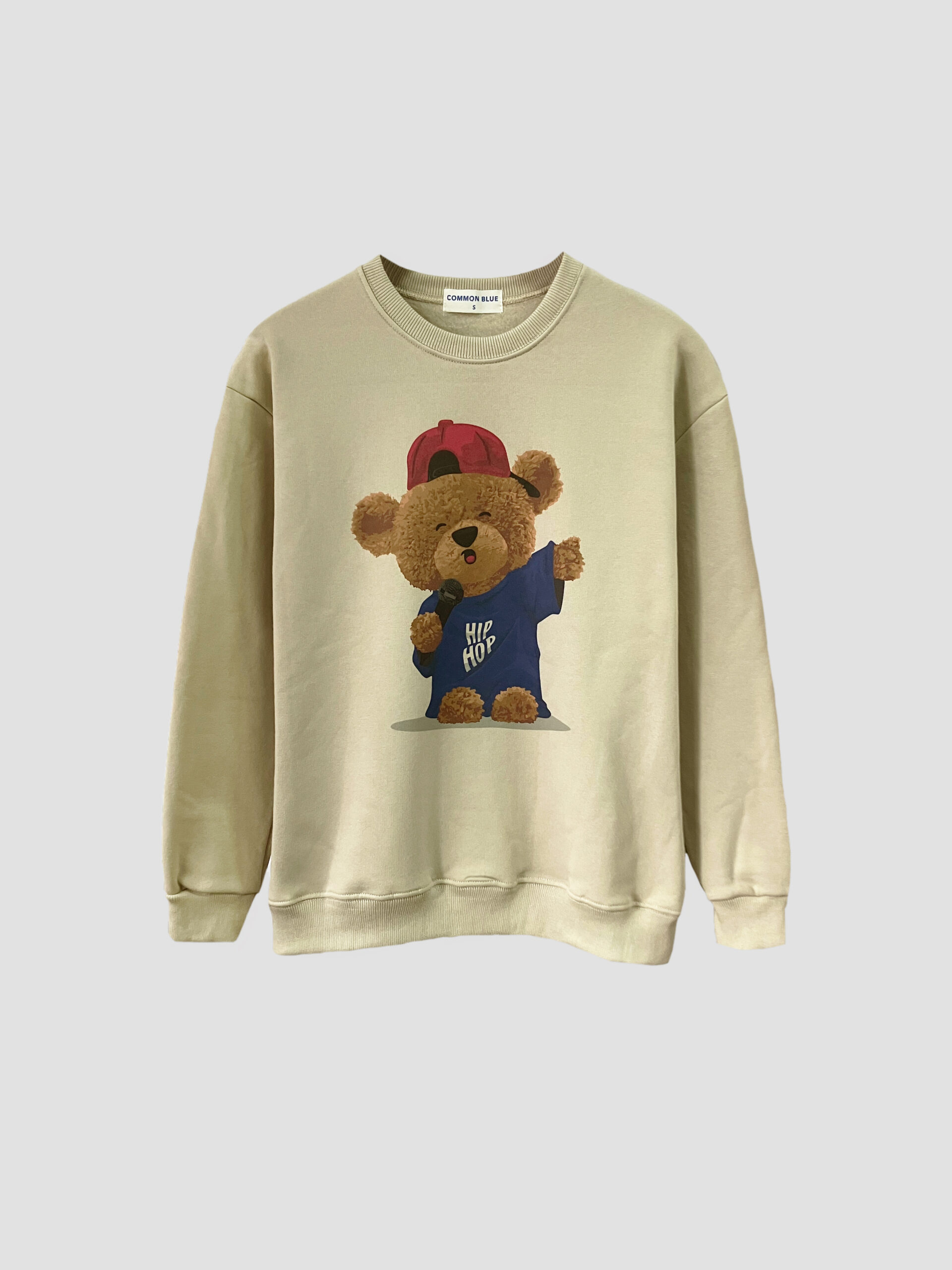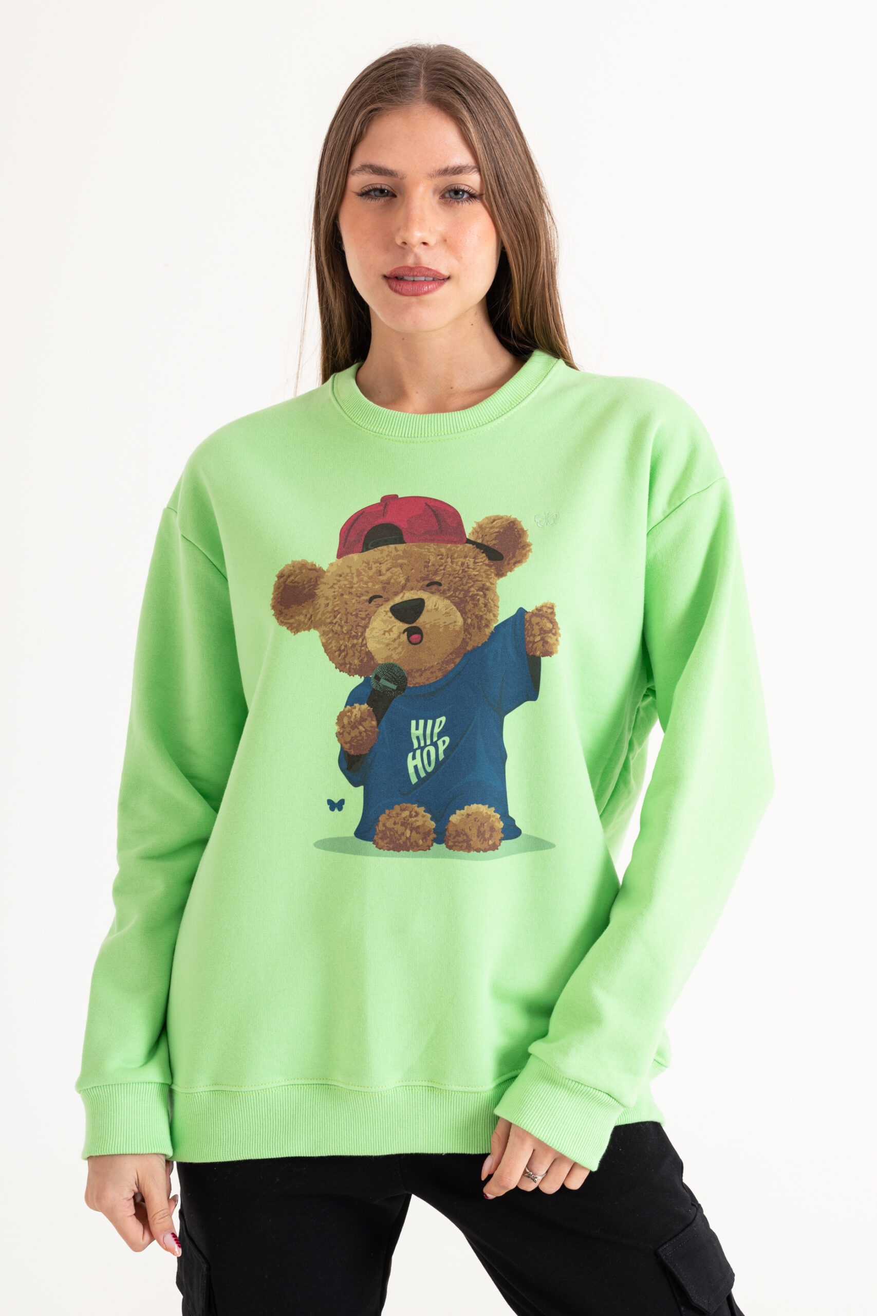 Buzo ancho manga larga con cuello redondo. Cuello, bajo y puños en morley. Detalle de estampa en el delantero.