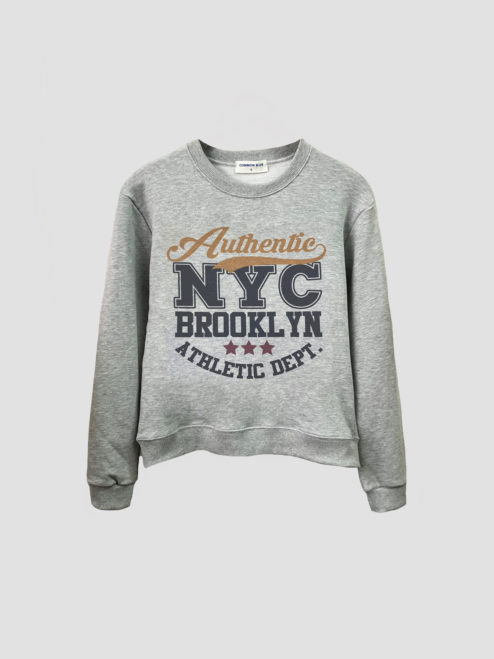Buzo básico manga larga con cuello, bajo y puños en morley. Detalle de estampa en el delantero.