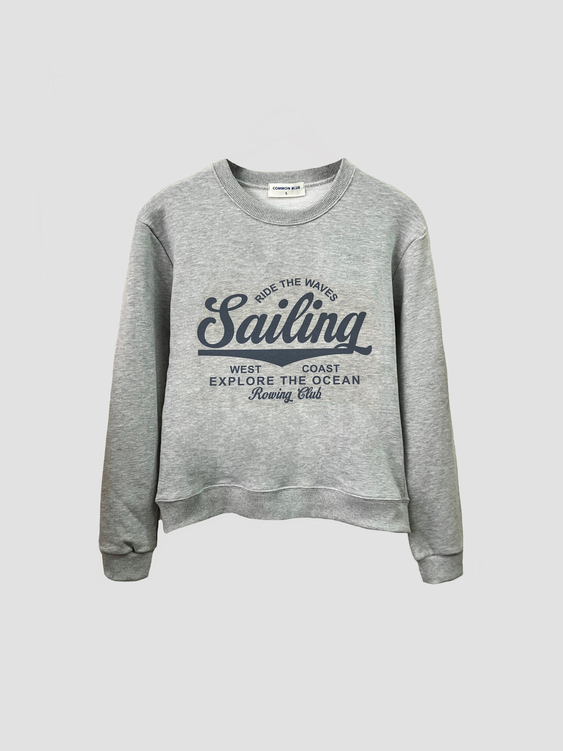 Buzo básico manga larga con cuello, bajo y puños en morley. Detalle de estampa en el delantero.