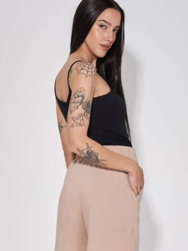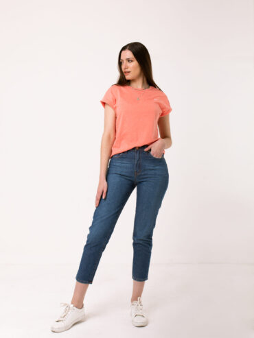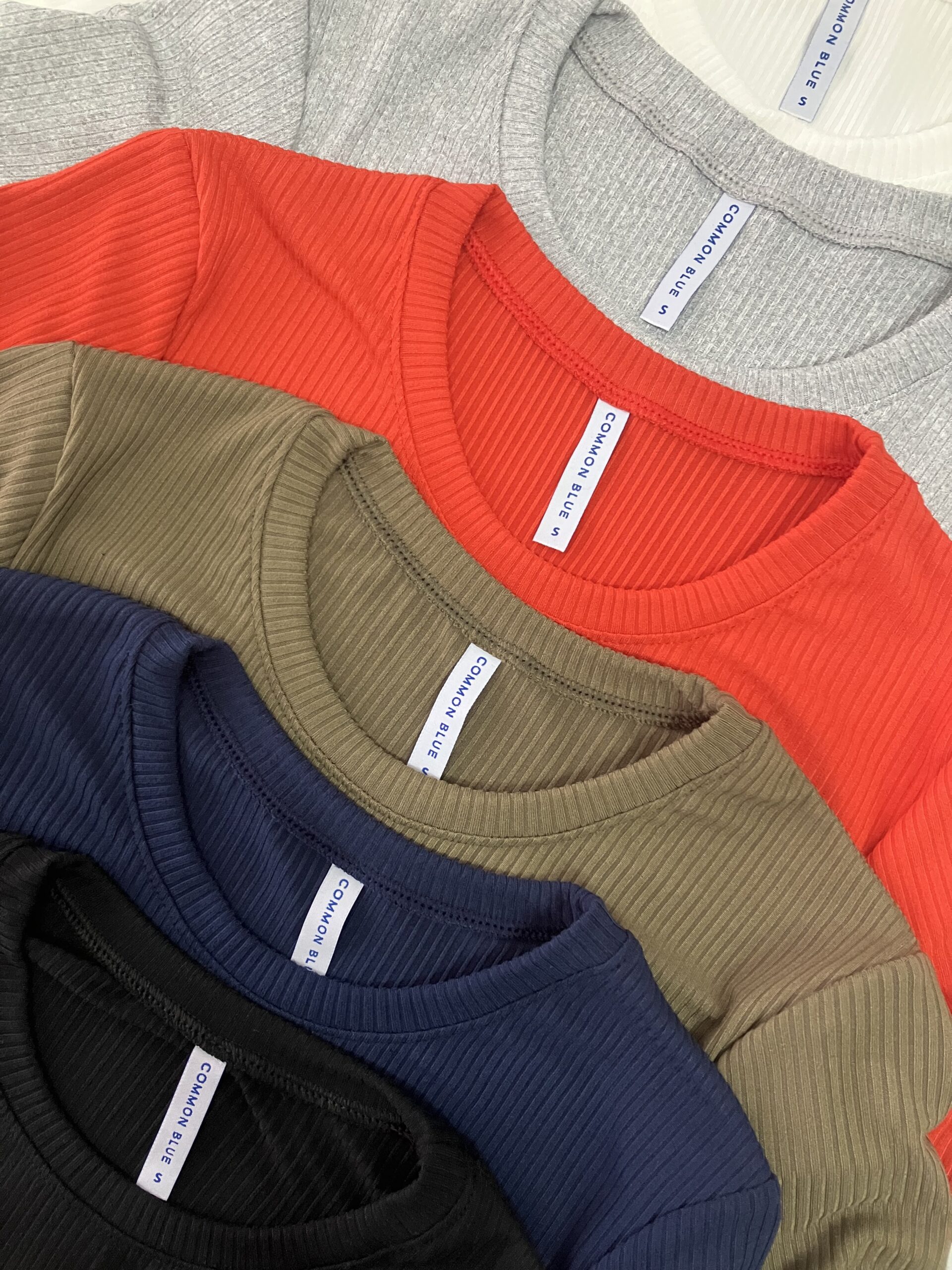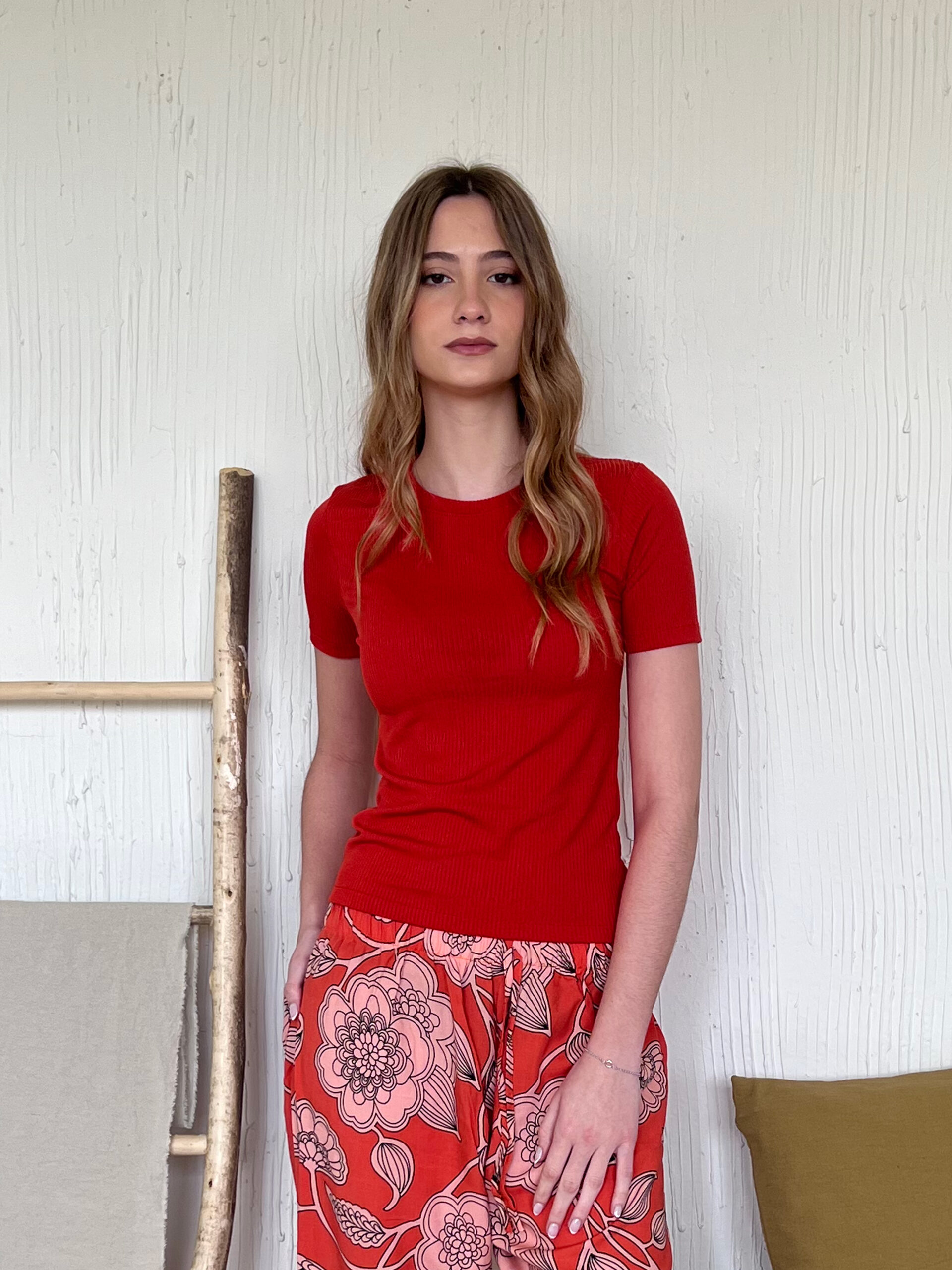 Remera básica en morley, manga corta con cuello redondo y bajo recto.