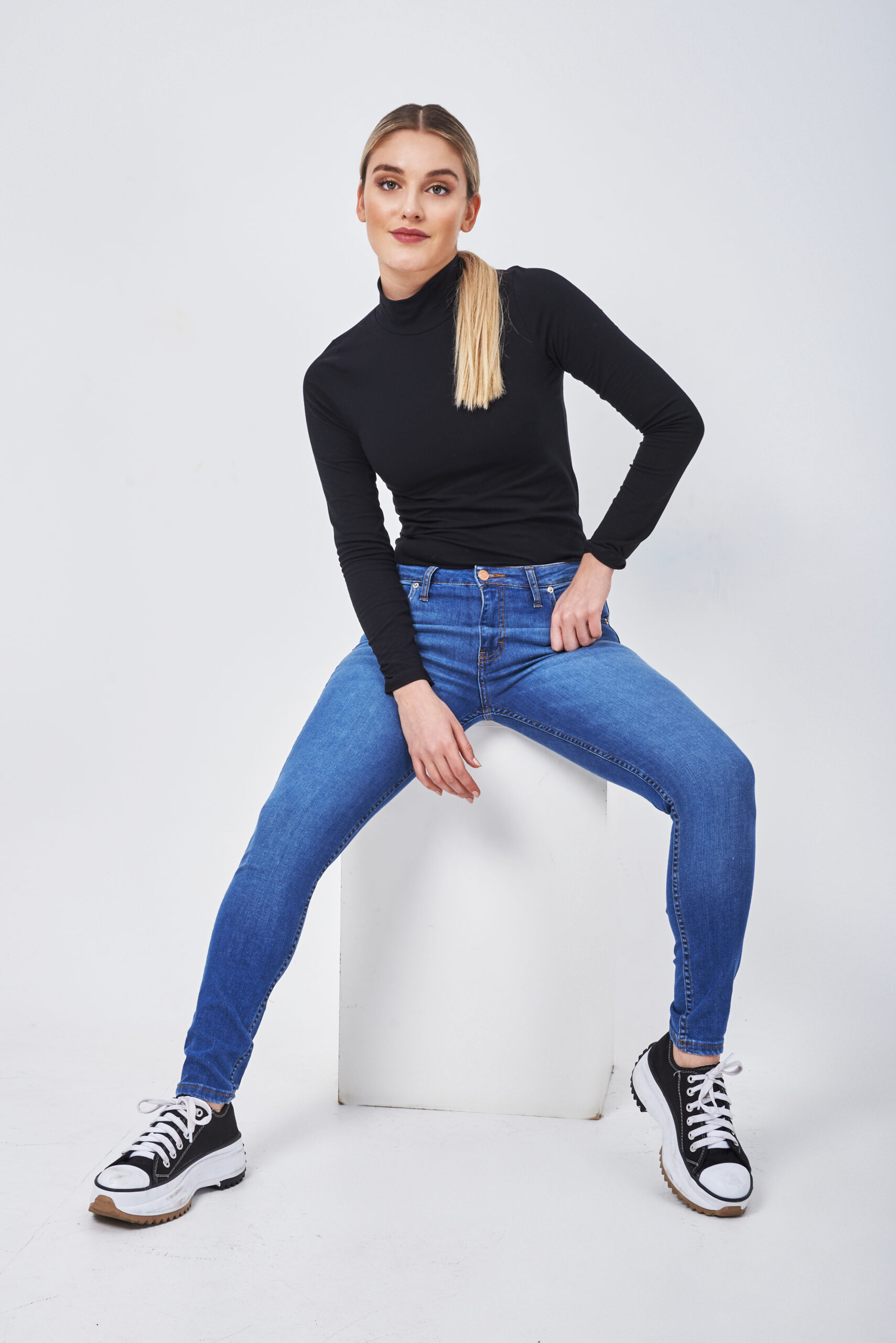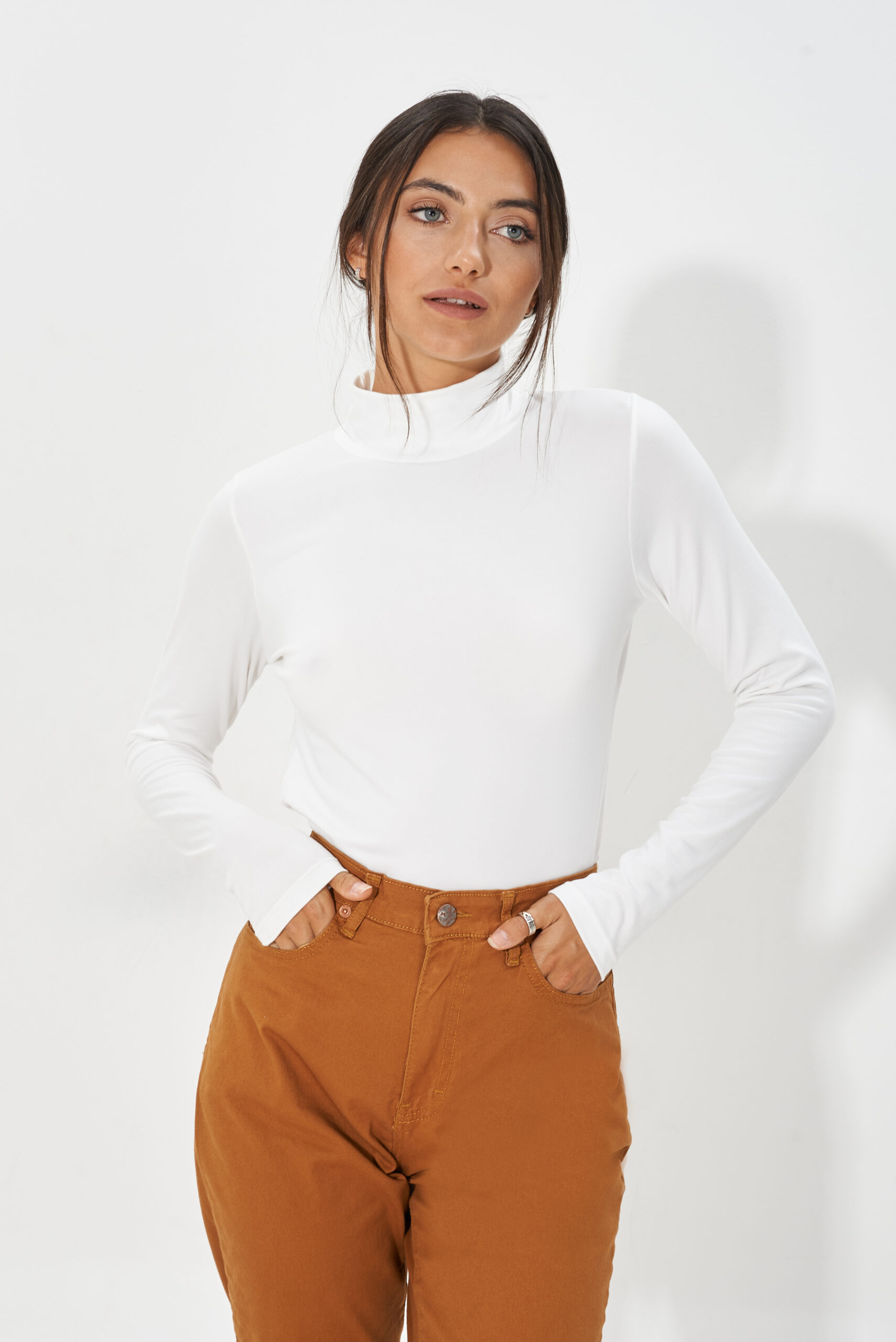 Media polera térmica manga larga. Bajo recto y largo hasta la cadera.
