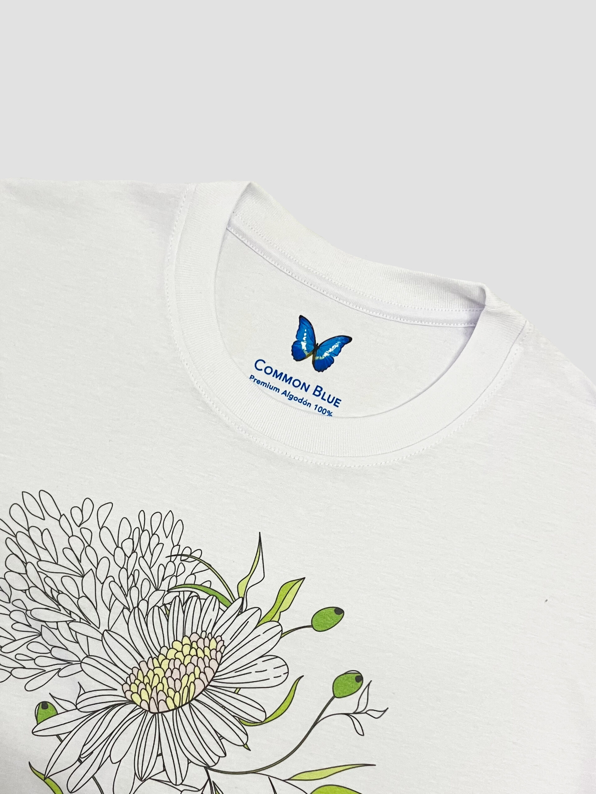 Remera holgada con cuello redondo en ribb y bajo recto. Detalle de limpieza de cuello, estampa en el delantero y en la parte interior del cuello.