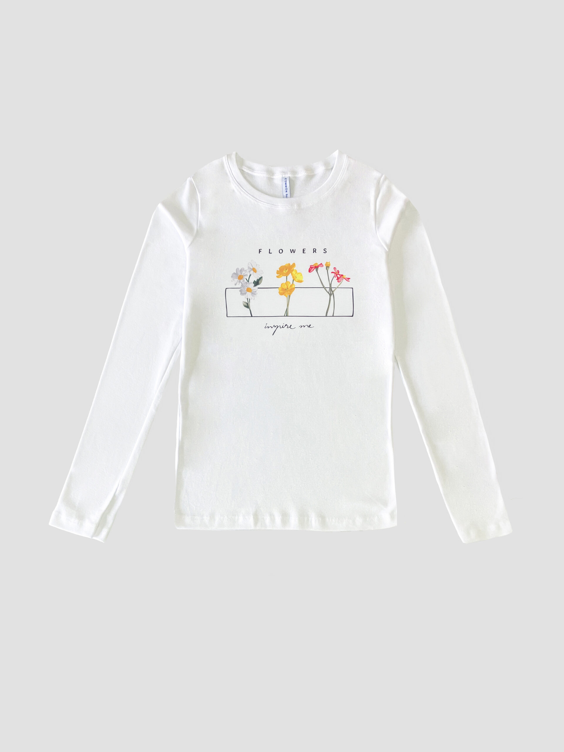 Remera básica manga larga con cuello redondo. Bajo recto. Detalle de estampa en el delantero.