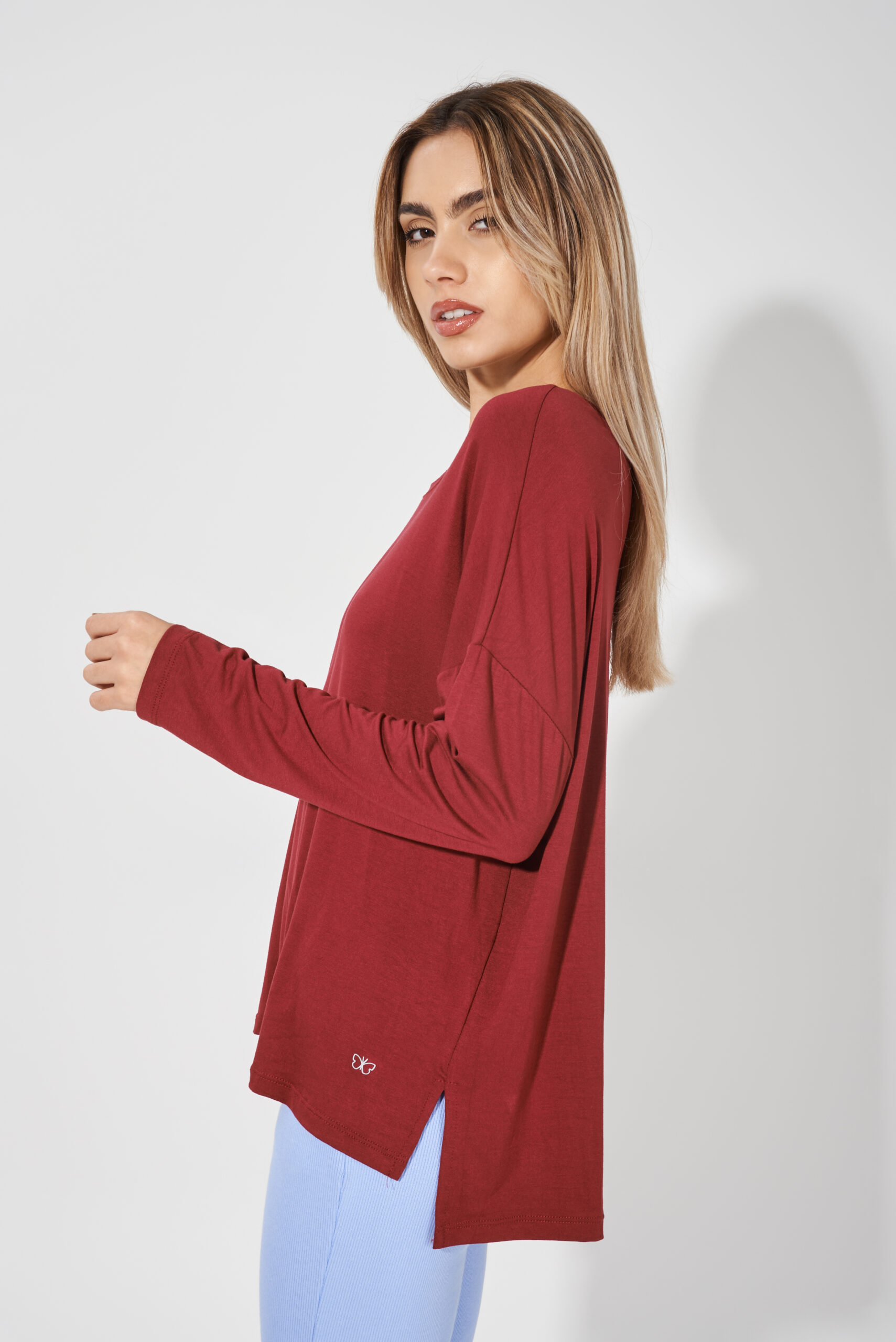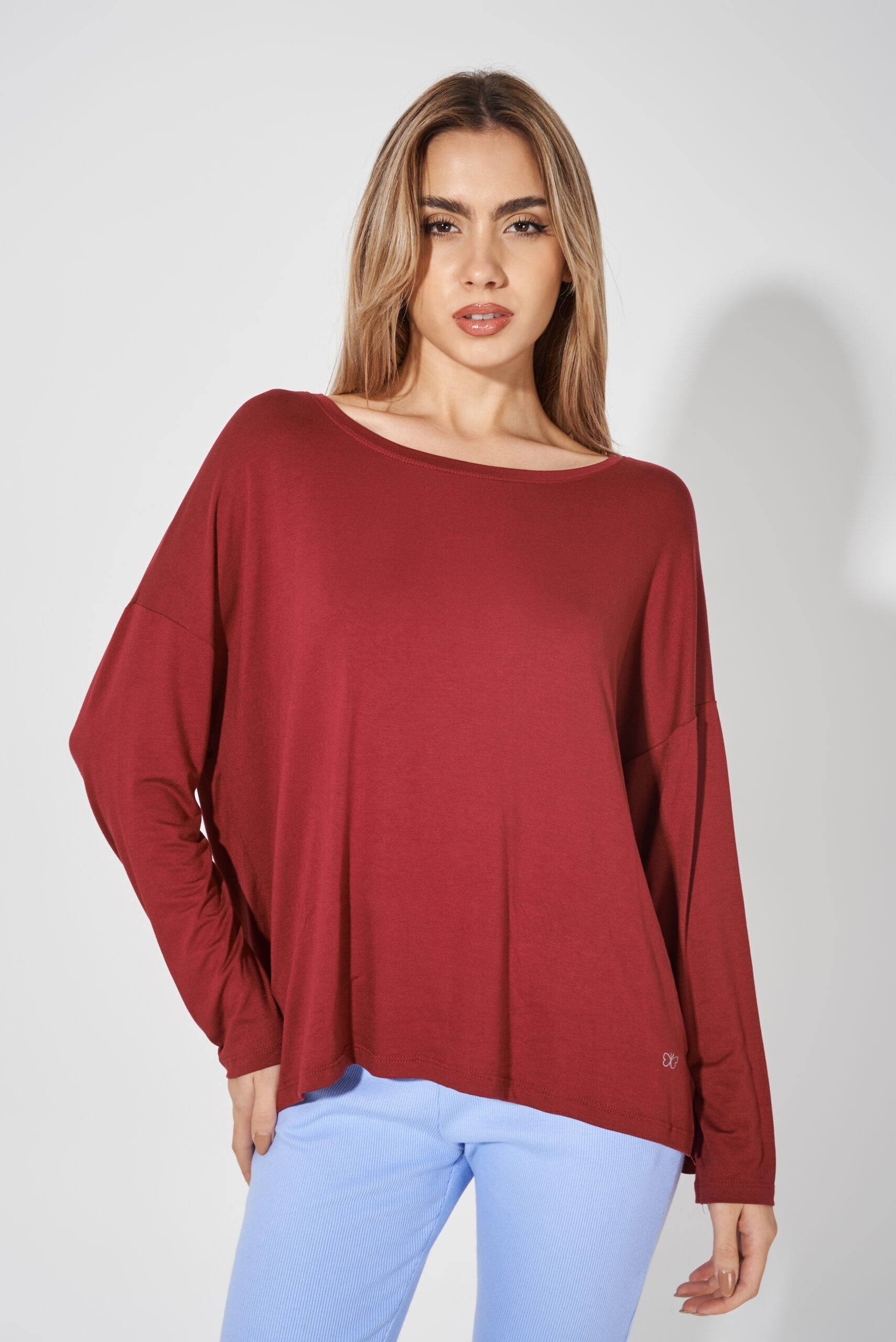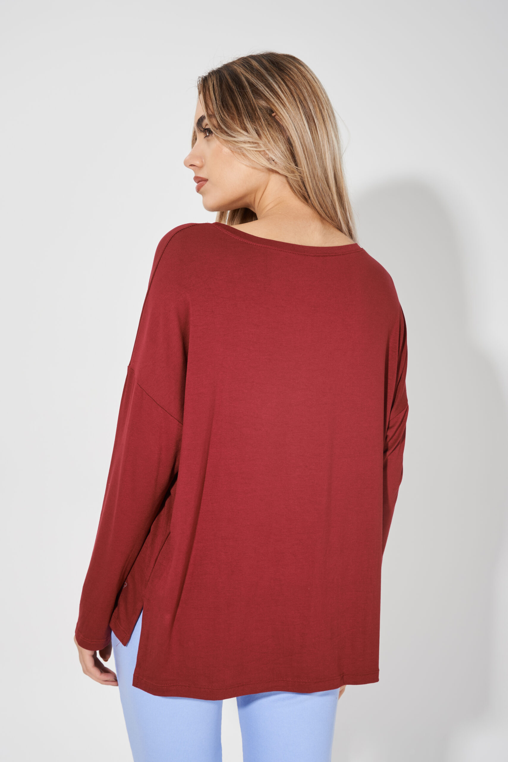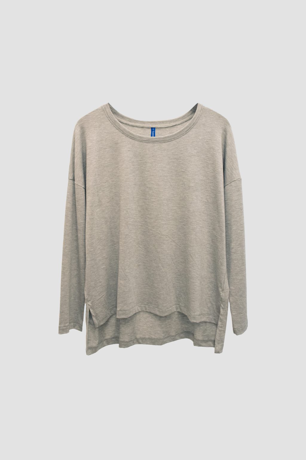 Remera ancha manga larga con hombros caídos. Delantero más corto que la espalda. (Algunas con detalle de logo y otras sin)