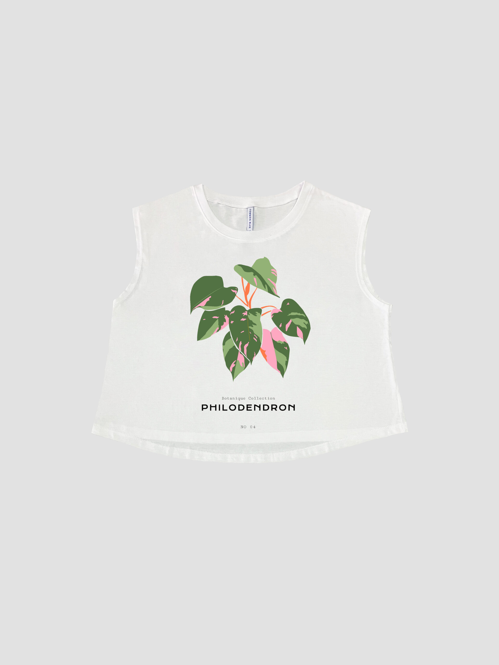 Musculosa ancha con cuello redondo en ribb y bajo redondeado. Detalle de estampa en el delantero.