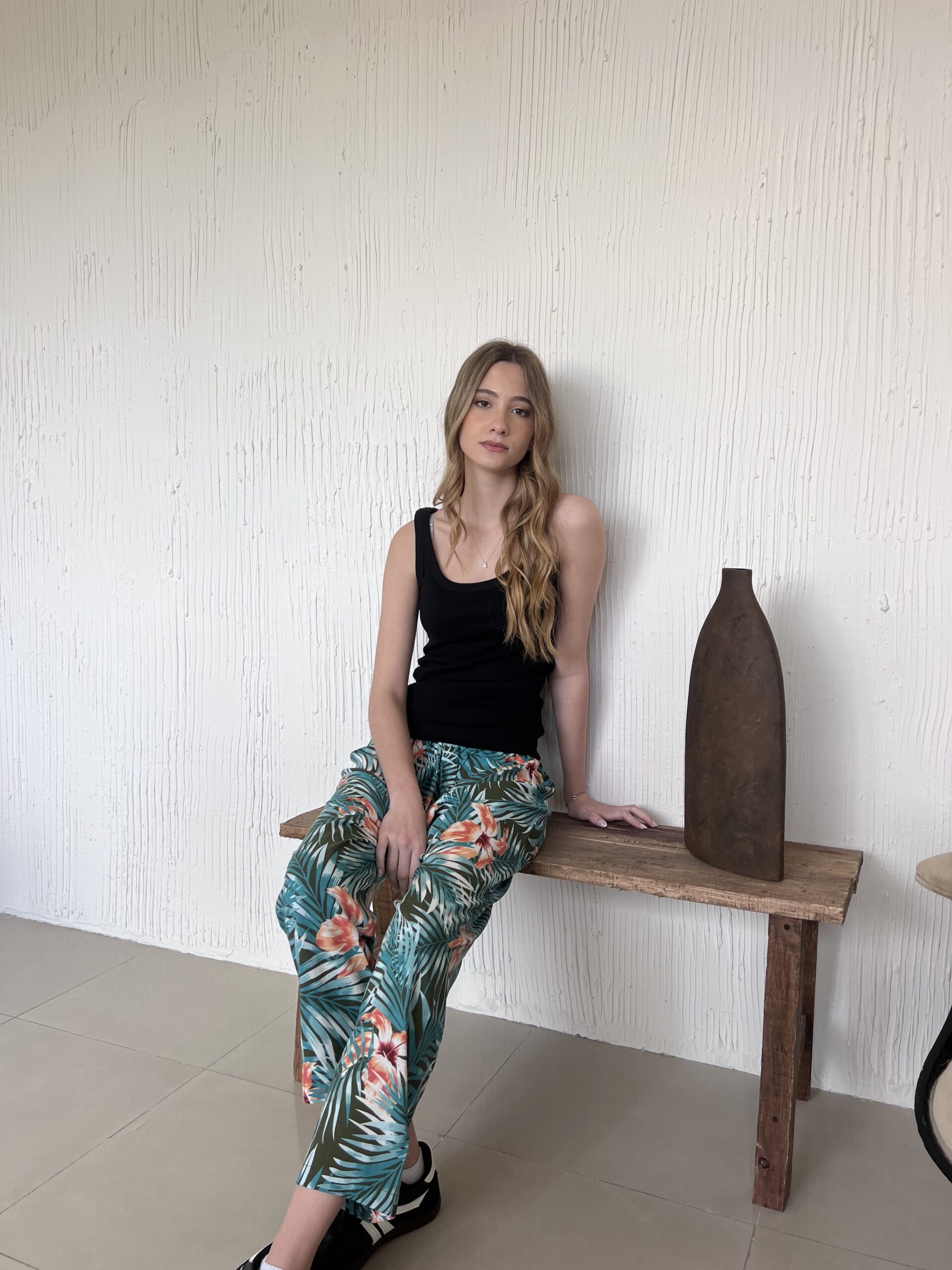 Pijama estampada con cordones no ajustables y un bolsillo trasero.