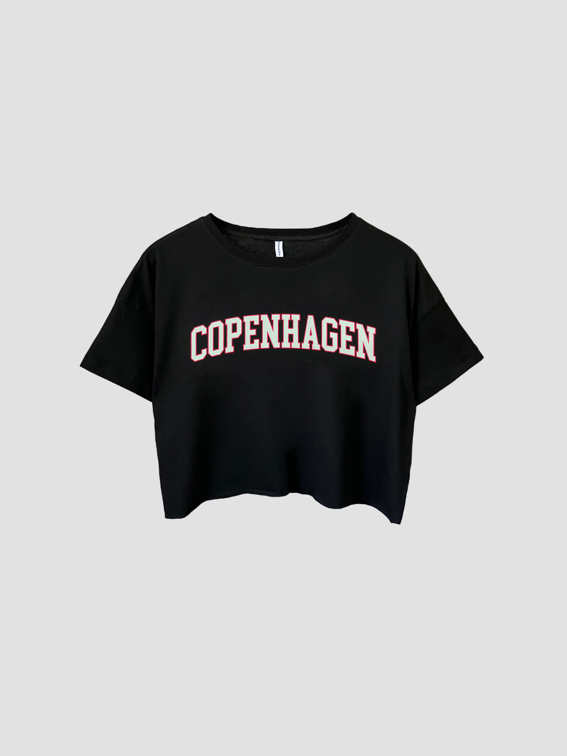 Remera manga corta con cuello en ribb, hombros caídos y bajo al corte. Detalle de estampa en el delantero.
